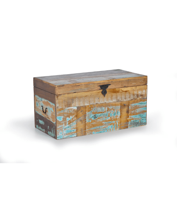 199,00 € IVA 21% Incl.Baúl de madera reciclada multicolor