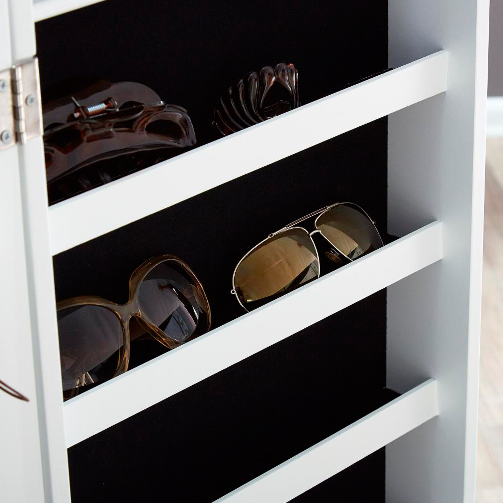 Funcionalidad dual: Combina un práctico espejo con un amplio armario joyero.