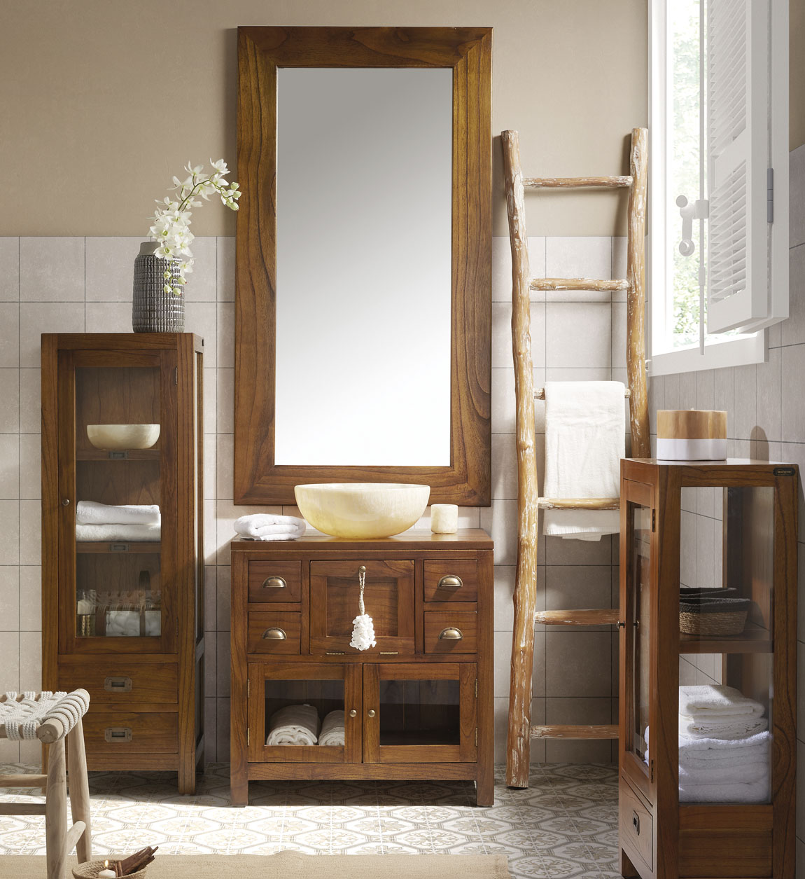 ESPEJO PARED DAKOTA BEIGE BLANQUEADO 77x5x100