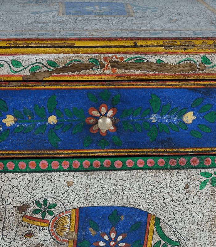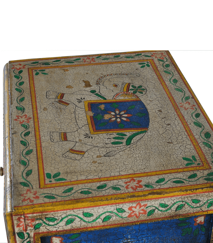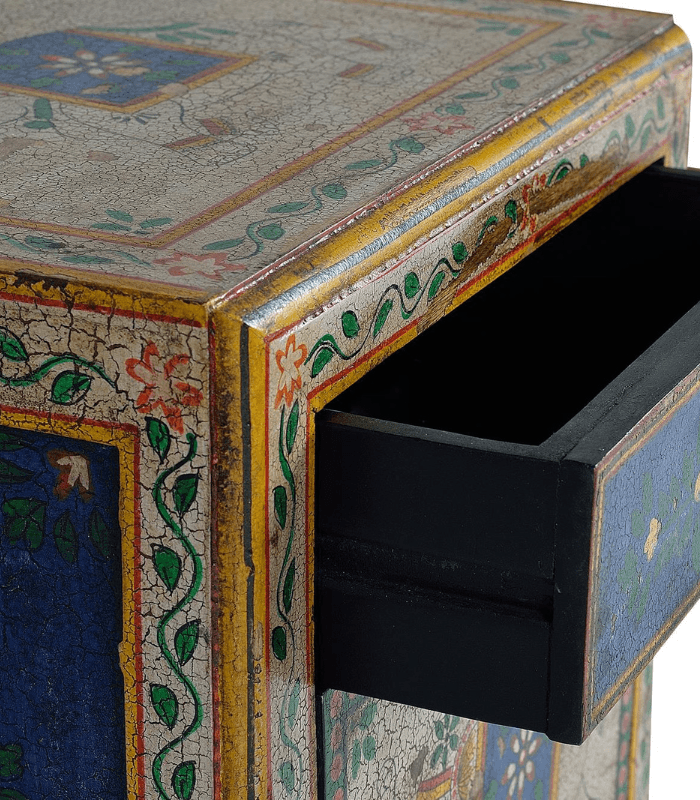 Mesita 1 Cajón y 1 Puerta en Madera de Mango – Detalles Pintados a Mano