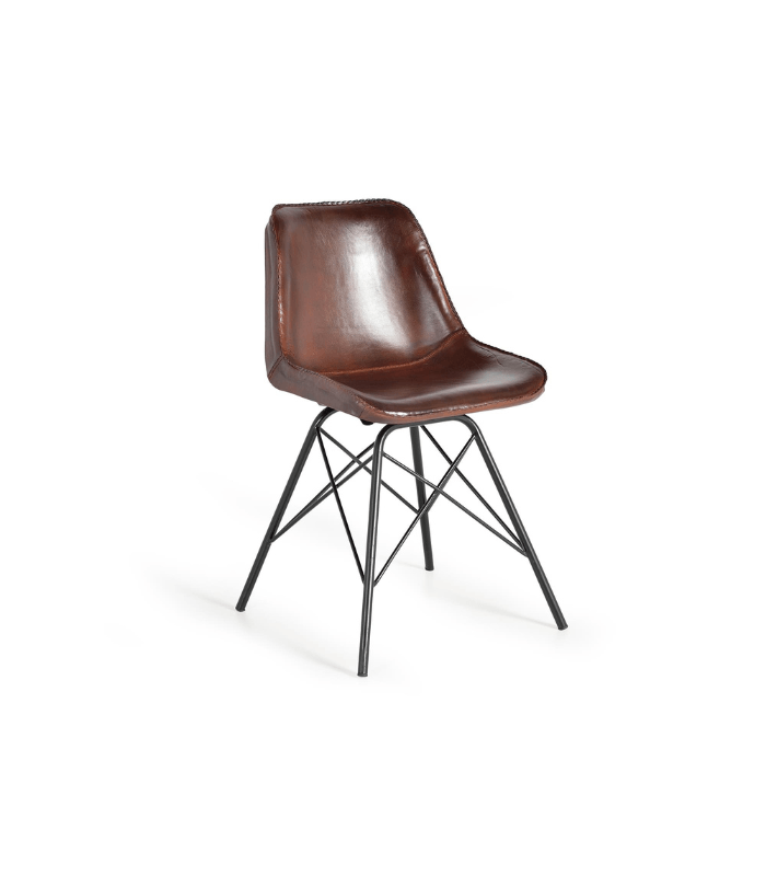 169,99 € IVA 21% Incl.Silla Tapizada en Cuero Marrón con Patas de Metal