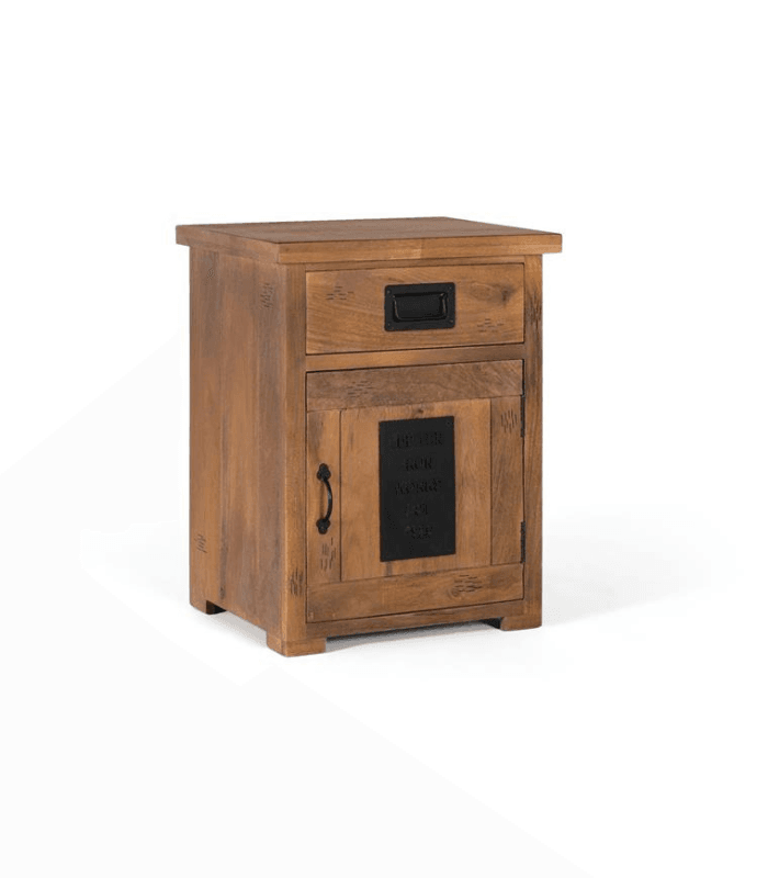 229,99 € IVA 21% Incl.Mesita de noche madera mango 1 cajón y 1 puerta