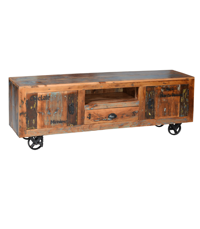 559,99 € IVA 21% Incl.Mueble TV con ruedas en madera reciclada