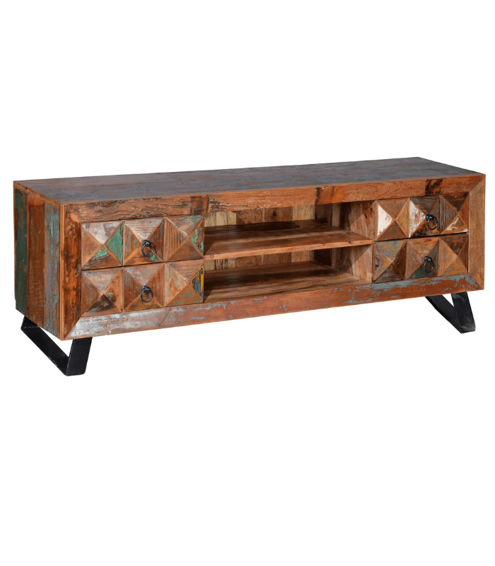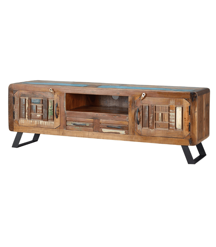 569,99 € IVA 21% Incl.Mueble TV de madera reciclada multicolor