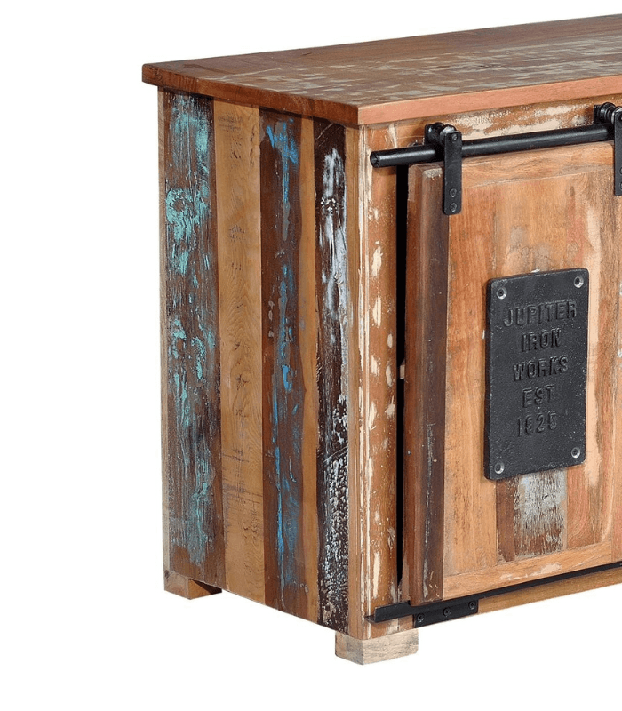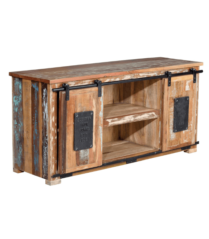 579,99 € IVA 21% Incl.Mueble TV con puertas correderas en madera reciclada