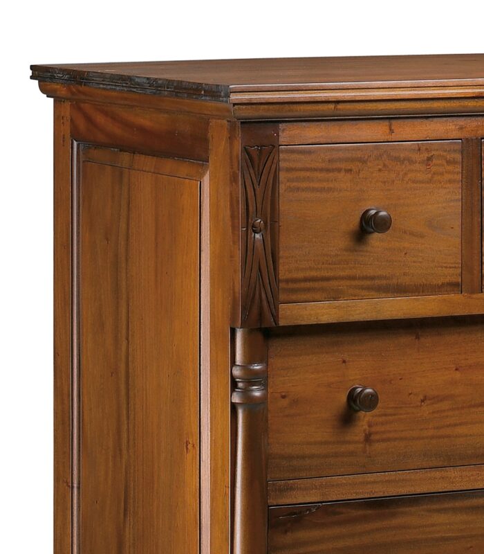Los dormitorios con muebles antiguos aportan un carácter único a estos espacios íntimos. El estilo isabelino en castaño macizo, con sus líneas elegantes y acabados artesanales, ofrece una opción clásica y duradera. Estos conjuntos suelen incluir armarios de tres puertas, cómodas con cajones, mesillas a juego, camas y, frecuentemente, espejos y sillas complementarias.