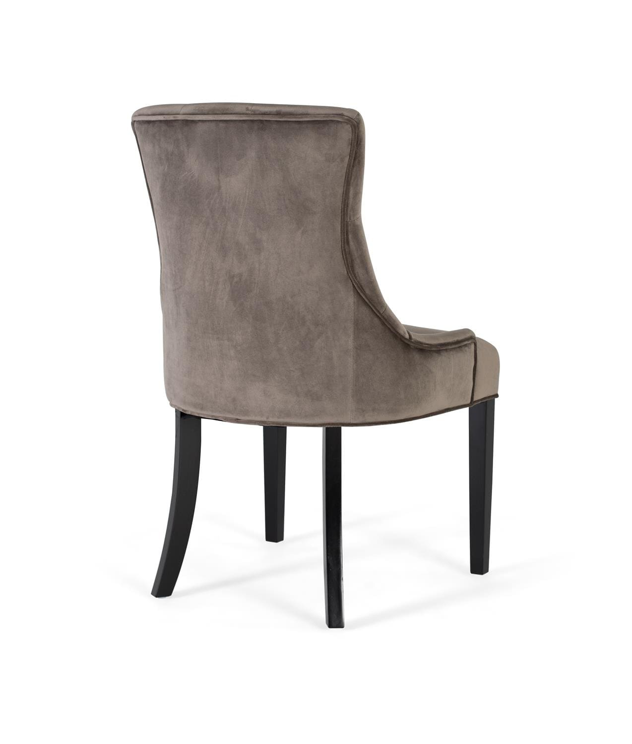Set de 2 sillas tapizadas en terciopelo poliéster color carbón. Patas de madera, diseño moderno y tacos protectores. Elegantes, funcionales y cómodas.