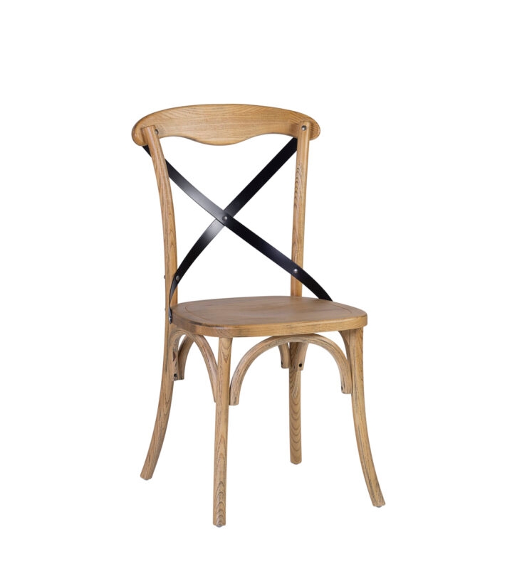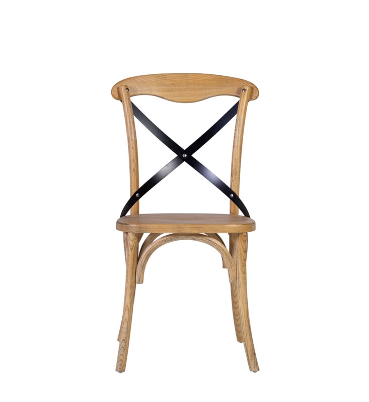 Silla industrial tapizada en piel marrón, con estructura de hierro negro. Cómoda, elegante y versátil.