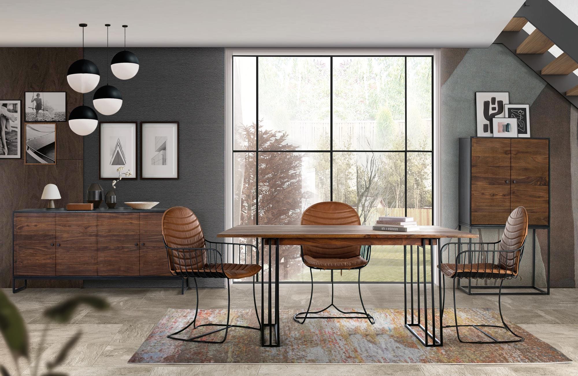 Su diseño incluye una estructura de metal en color negro, que no solo aporta un toque moderno e industrial, sino que también ofrece gran estabilidad y resistencia. Gracias a sus tacos antideslizantes, se mantiene en su sitio incluso sobre superficies lisas y evita deslizamientos molestos, además de proteger el suelo de ralladuras.